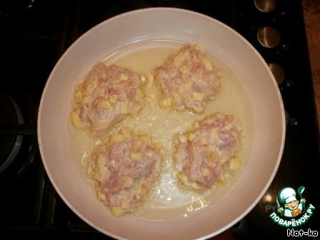 Далее выкладываем ложкой на сковороду. Я выложила в виде котлеток.