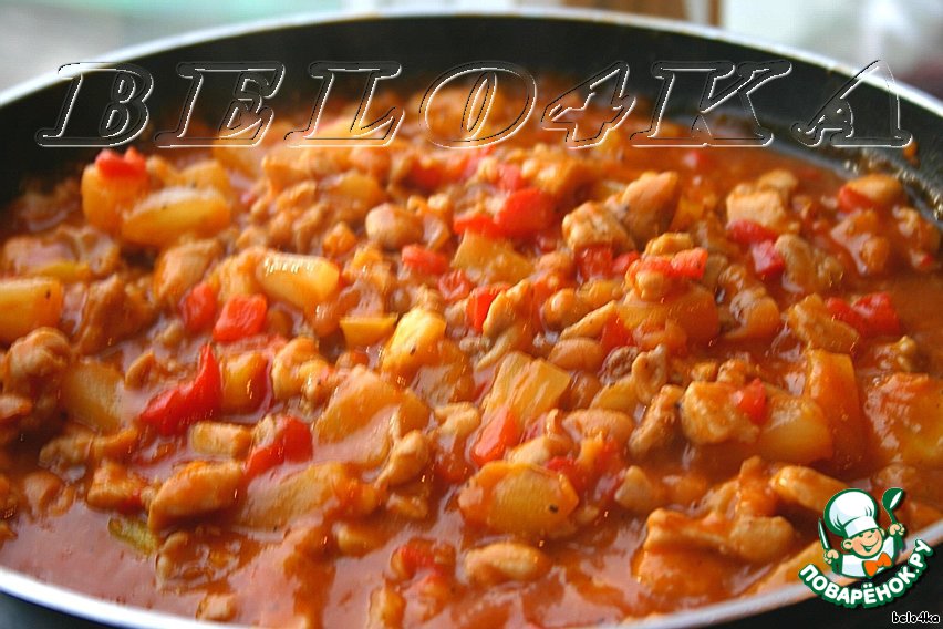 | Признаюсь, рецепт привлек меня своим необычным сочетанием куриного мяса и фруктов. Честно - для меня это был эксперимент, неожиданно обернувшийся настоящей находкой. Ведь всего за полчаса Вы приготовите изысканное блюдо с фруктовыми кисло-сладкими нотками, достойное праздничного стола! Рецепт этого блюда был размещeн на сайте в 2008 году пользователем ЮРИСТИК под названием «Курица "Вкусняшка"» и иллюстрирован мной в рамках акции «Раскраски». |