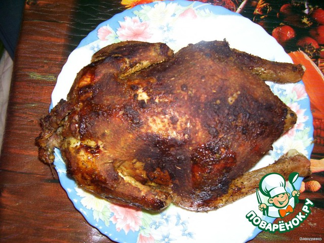 По прошествии половины времени можно намазать курицу горчичкой, для образования зажаристой корочки.