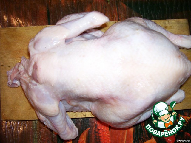 Берем курицу (у меня была примерно 1,5 кг), моем ее.
