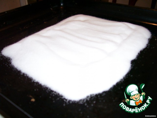 На противень насыпаем соль (площадь соли должна быть немного больше курицы), и отправляем нашу курицу отдыхать в разогретую духовку примерно на час-час десять. Кстати, при таком способе приготовления мы еще избавлены от такого, что уж говорить, муторного процесса, как отмывание пригоревшего жира с противня. После того как курица приготовится, а противень остынет, просто поддеваете застывшую соль вместе с впитавшимся жиром и выкидываете.