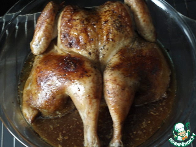 | Давно я не выкладывала рецептов, всё времени не хватает. Решила исправиться и поделиться рецептом, по которому готовила дважды за прошедший месяц. Просмотрела на сайте рецепты с похожим названием, аналогичного не нашла. Если вдруг повторилась, прошу меня извинить. Курочка по этому рецепту получается очень ароматной, с нежным цитрусовым вкусом и хрустящей корочкой. К тому же сама птичка разрезается по спинке что тоже необычно. Готовила по рецепту nestea. |