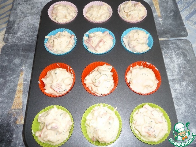 Формочки для маффинов заполнить. У меня силиконовые - не смазывать маслом.