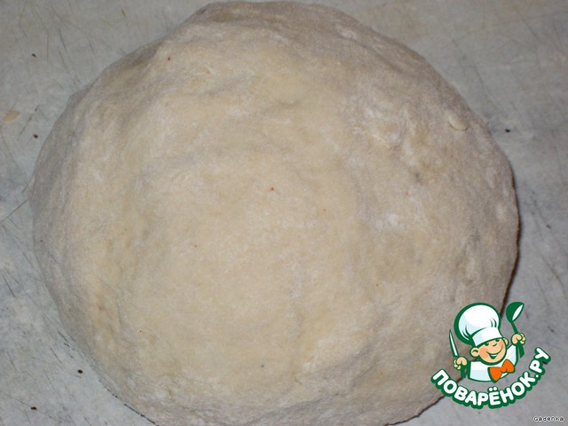 Затем скалкой раскатать до толщины примерно 1-1,5 см.