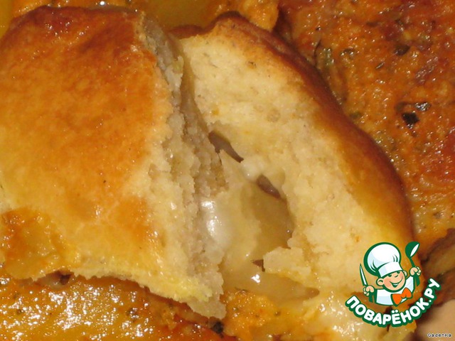 Пышки пропекаются хорошо, а снизу пропитываются соусом от курочки и получаются очень вкусными и ароматными, да еще и сыр плавленый, разве это не вкусно?!