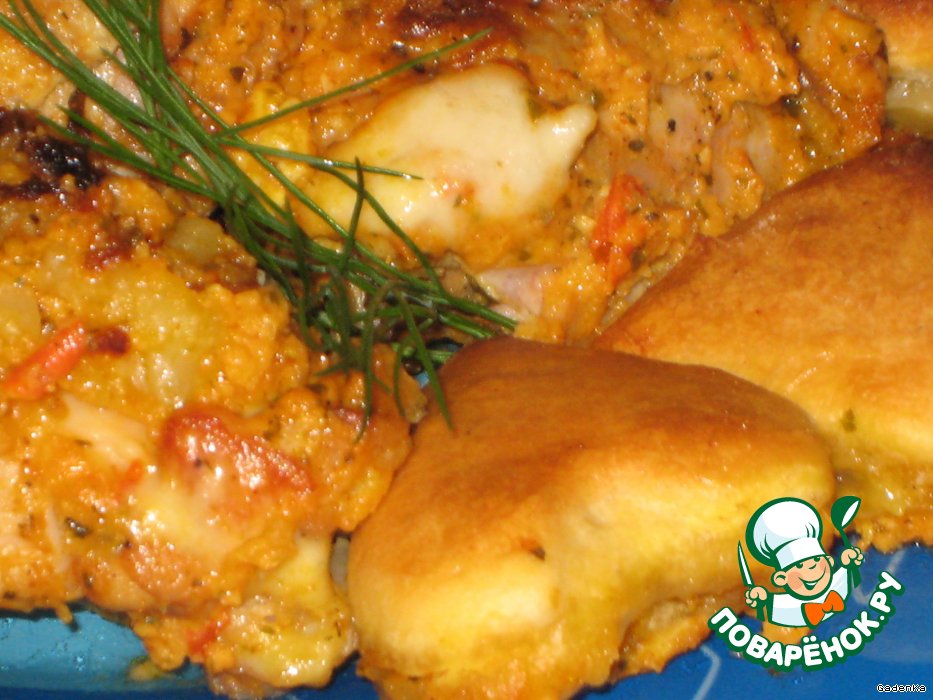 Курица в яблочно-сливочном соусе под сырными пышками