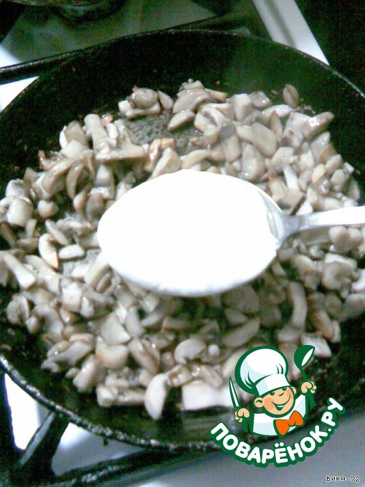 грибочки режем, обжариваем до готовности, добавляем 2ст.л. сметаны