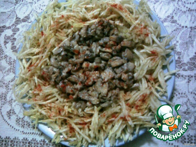 в серединку - грибочки, подсаливаем и посыпаем паприкой