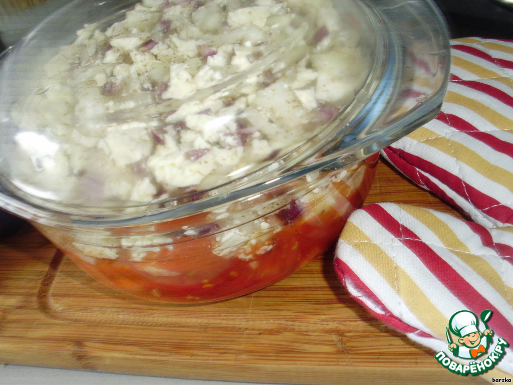 Далее - я закрывала крышкой (можно - фольгой) - отправить в духовку на 15-20 минут, снять крышечку и запечь ещё 5-10 минут.