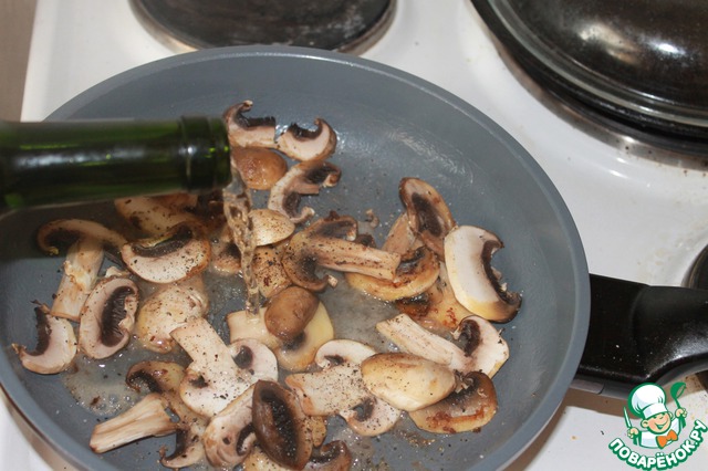 Добавляем соль, перец, 2 ст. ложки белого вина и тушим еще минут 5