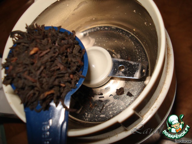 Готовим "коптильное" масло: 1 мерную ложечку чая смолоть в порошок,