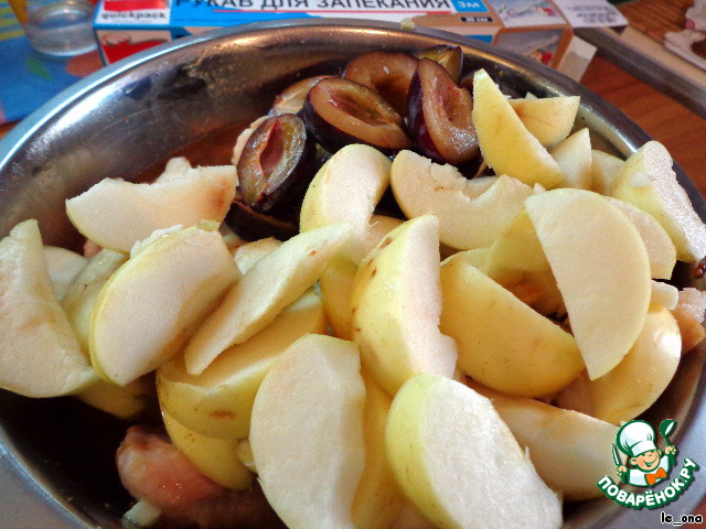 Из яблок удалить сердцевину, нарезать дольками. Сливы разрезать пополам, косточки удалить.