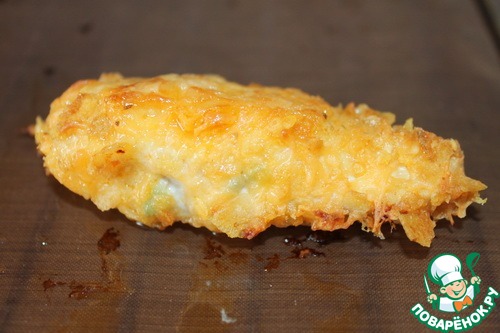 Как вариант - сначала обвалять в муке, затем обмакнуть во взбитое яйцо и покрыть сыром с чипсами.