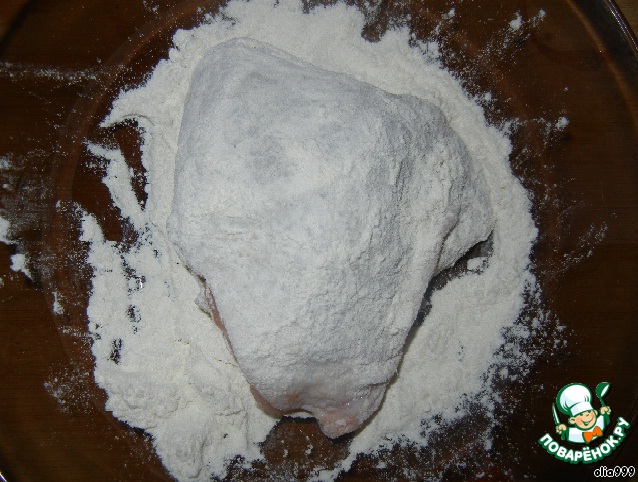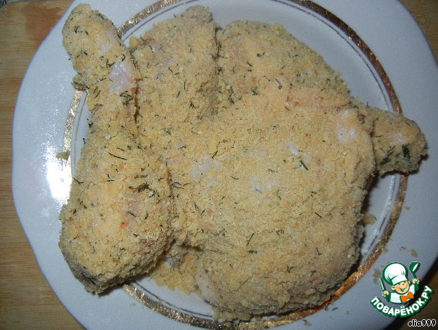 И, наконец, в сухарях (панировка должна плотно прилегать). Оставить мясо в холоде на 1 час.