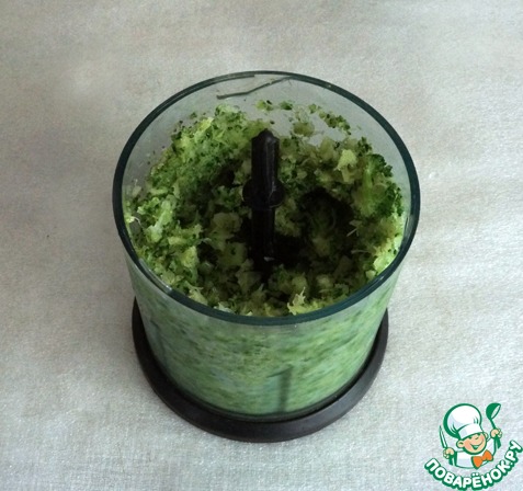 Тем времени брокколи измельчить в блендере или мелко нарезать, слегка подсолить.