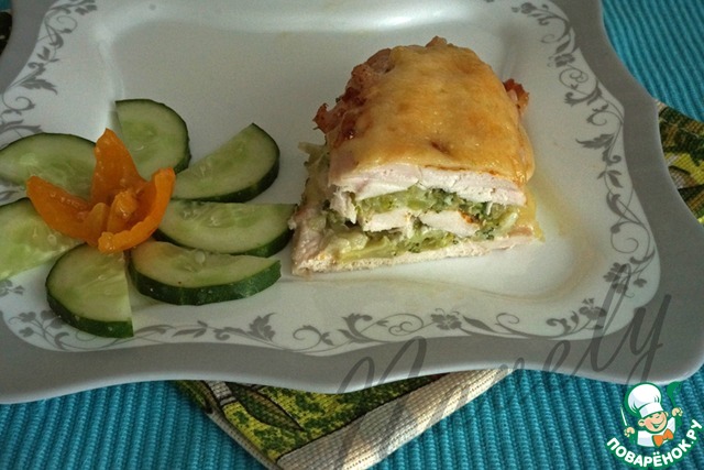 | Хочу предложить Вам вкусное, диетическое, красивое блюдо. Готовится просто, результат великолепный. Заходите в гости. По каллорийности - на 100 г 105.32 ккал., Б/Ж/У - 18.7/3/1.04 |