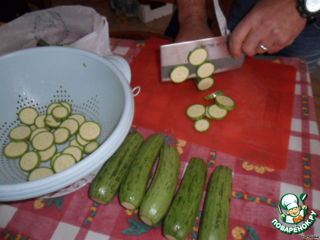 Нарезаем кабачки.