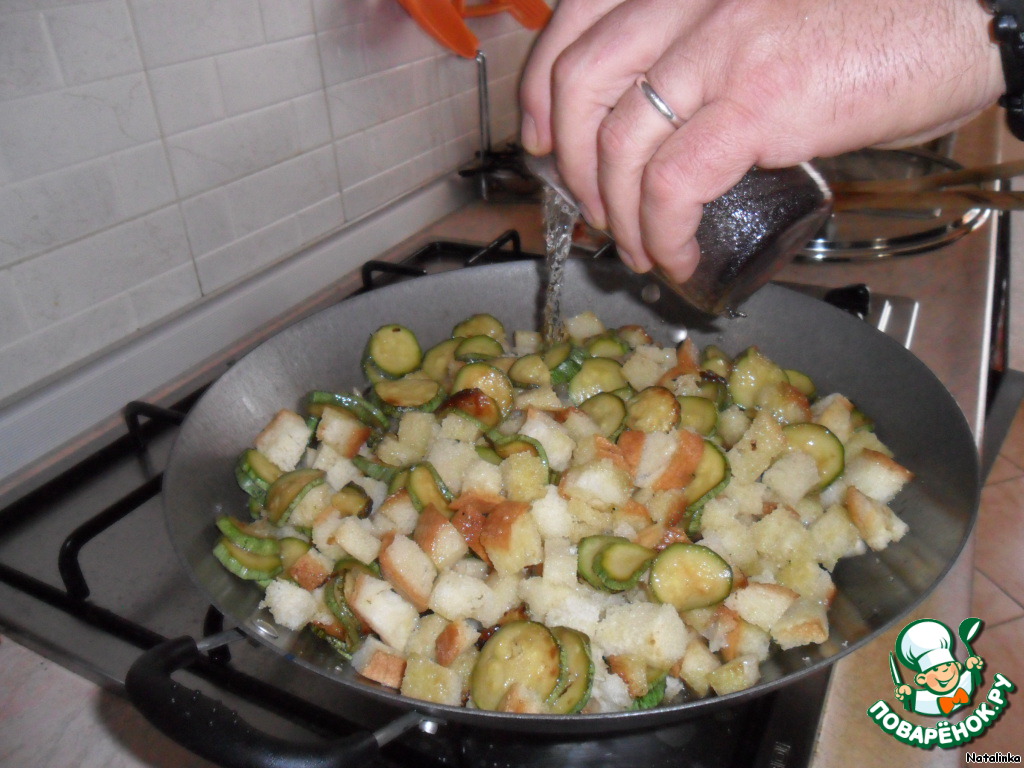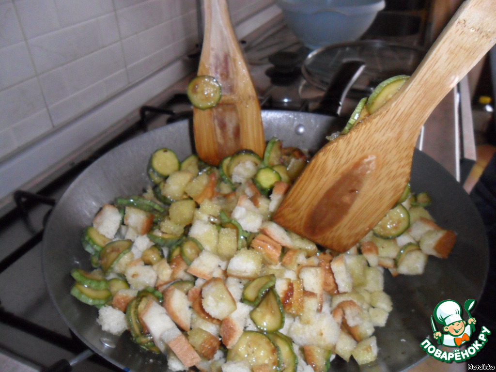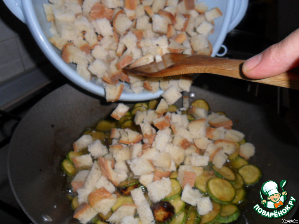 Обжариваем кабачки, когда готовы - очередь хлеба.