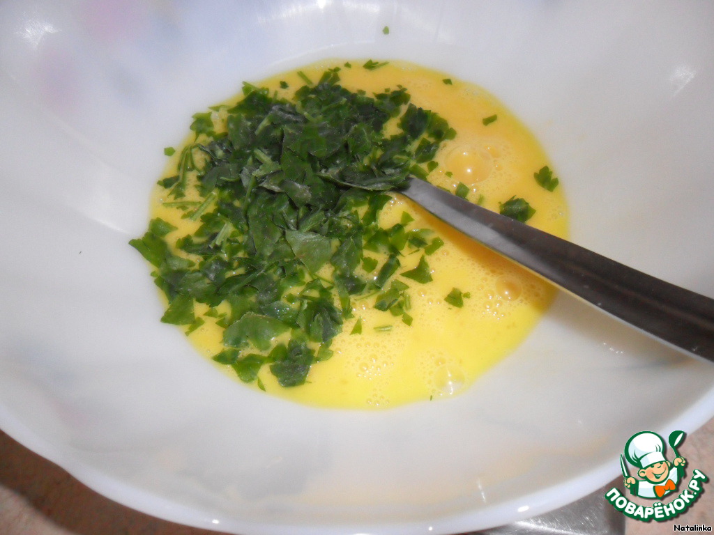 Смешиваем яйцо с петрушкой, солим.