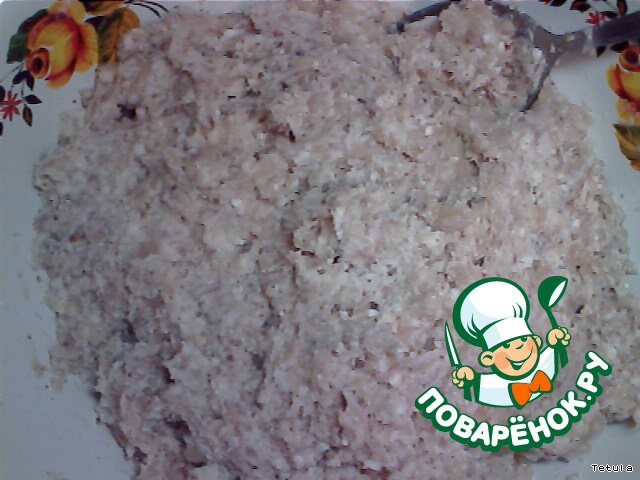 Все пропускаем через мясорубку и хорошенько перемешиваем. Не солить.
