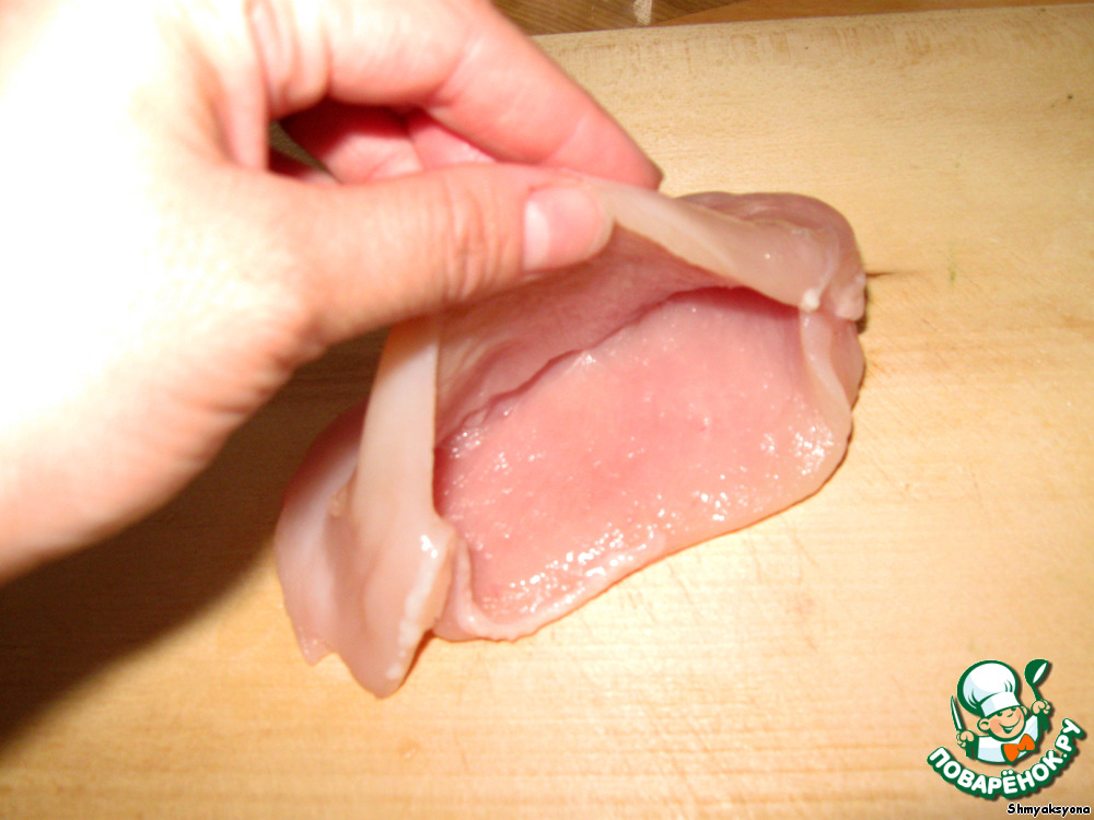 Филе аккуратно надрезаем с боку так, чтобы получился кармашек.