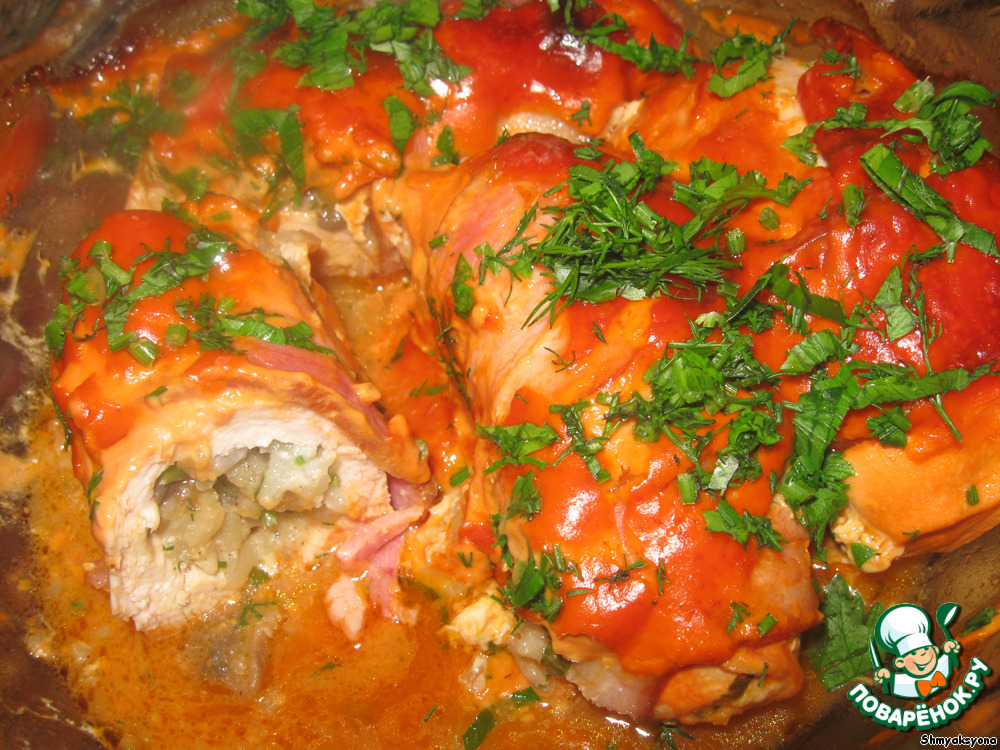 Заливаем наши обертыши соусом и - в духовку минут на 30, температура примерно 200 градусов.