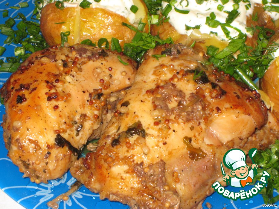 Я на гарнир сделала печеный картофель целиком в шкурке, завернутым в фольгу, запекался на одном противне с курицей.