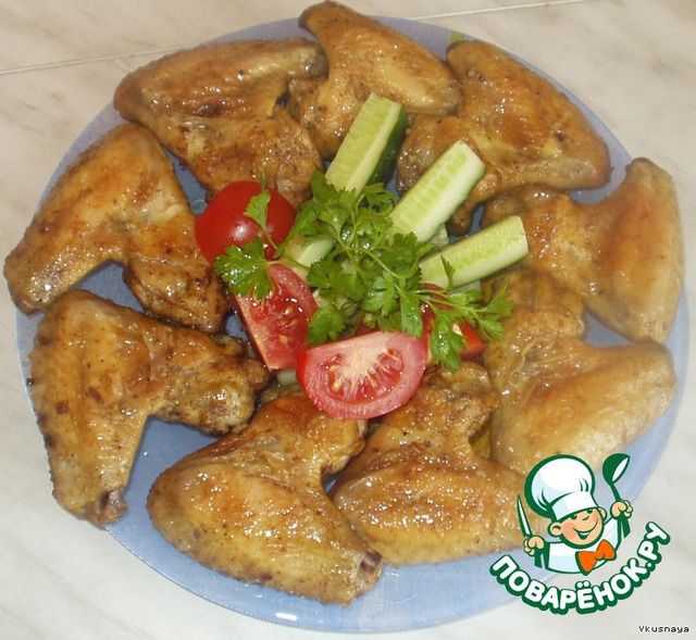 Поставим, в разогретую до 220 градусов, духовку. И ждем, пока крылышки подрумянятся.
