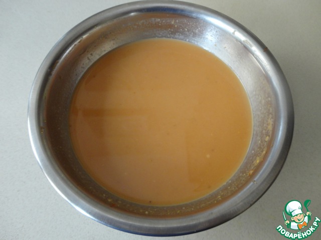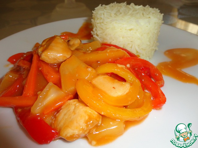 В это время делаем соус: в мисочке смешиваем ананасовый сок, кукурузный крахмал, кетчуп, уксус, чеснок, карри, соль и коричневый сахар. Попробуйте соус, если надо, подкорректируйте его на ваш вкус (может, вам захочется больше уксуса или сладости).