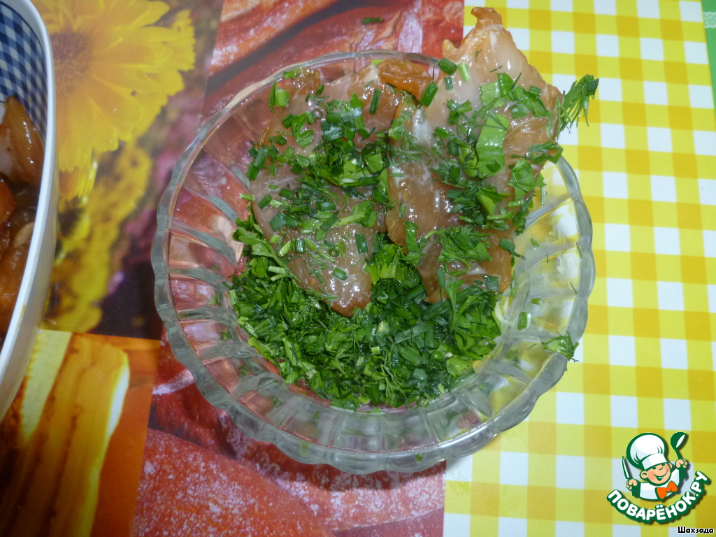 Куриную грудку нарезать на тонкие ломтики и немного отбить. Посолить по вкусу, добавить соевый соус, поставить в холодильник.