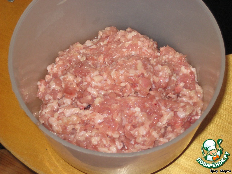 Сделать куриный фарш, у меня он из куриной голени, потому что он пожирнее, чем из грудки.