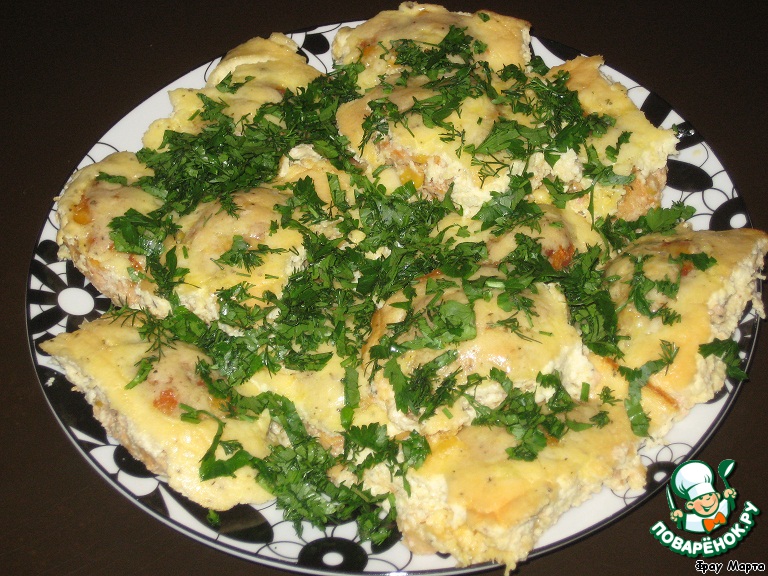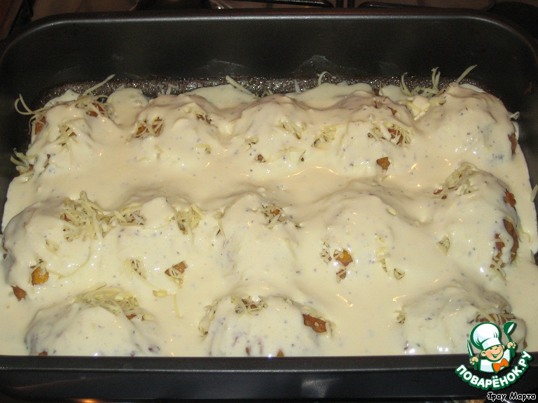 Залить заливкой и поставить минут на 10 в духовку запечь.