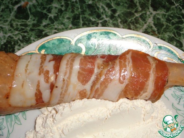 Каждый кусочек филе заворачиваем в кусочек бекона.