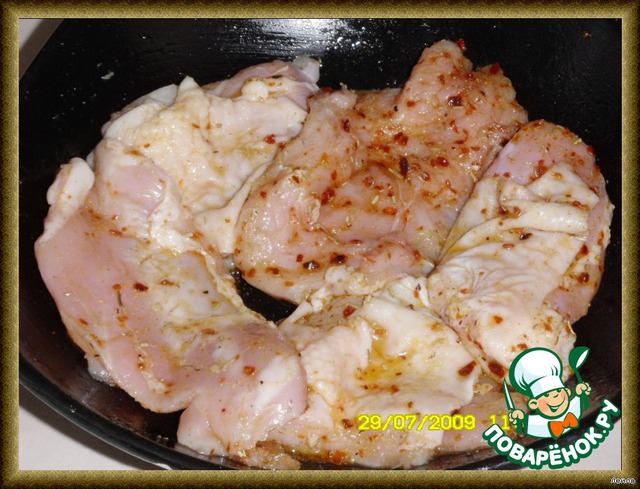 Обжарить слегка на сковородке (без масла),в маринаде хватает,с 2-х строн