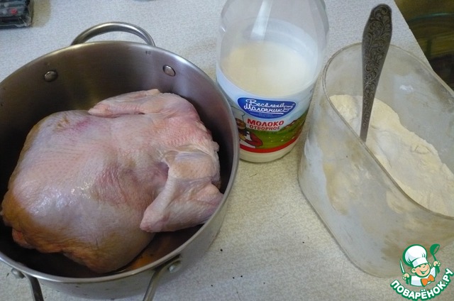 Теперь залить нашу курочку молоком и оставляем на 30 мин.