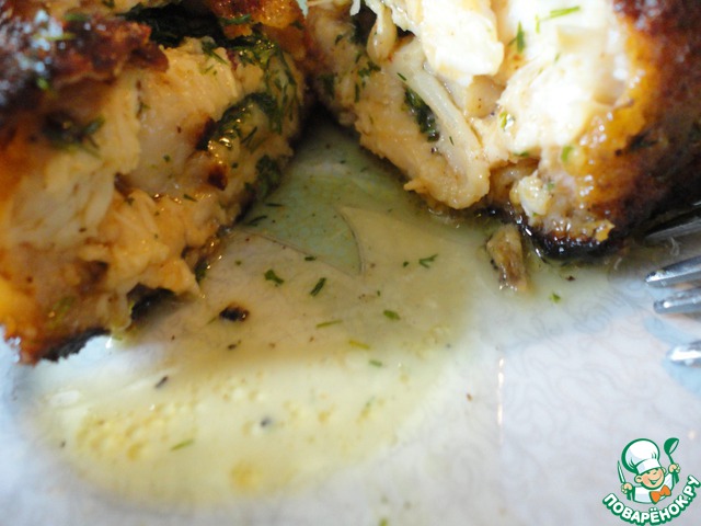 Примерно так-же заворачивают голубцы. Очень важно, чтобы масло было плотно завернуто в мясо, оно не должно вытечь при жарке.