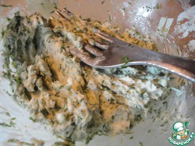 Другую часть зелени добавляем к предварительно вынутому из холодильника для размягчения сливочному маслу.
