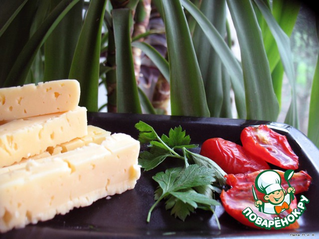Нарезать сыр толстыми брусками – по 2 на каждое филе. Петрушку разобрать на листики – по 2 на каждое филе.