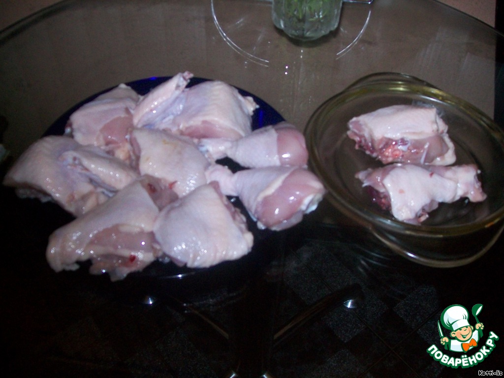 Каждый кусок разрезать на две части. В итоге, у нас должно выйти 8 красивеньких кусочков курицы. Это очень важный момент для Ямайской кухни. Все должно быть нарезано красиво и правильно.