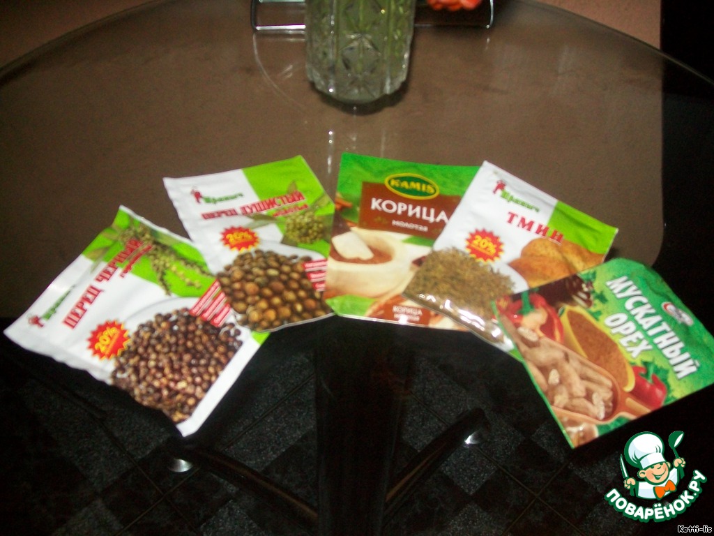 Дальше приступаем к сборке приправы джерк. На фотке я показала все сыпучие приправы. Согласитесь, это совершенно не проблема купить.