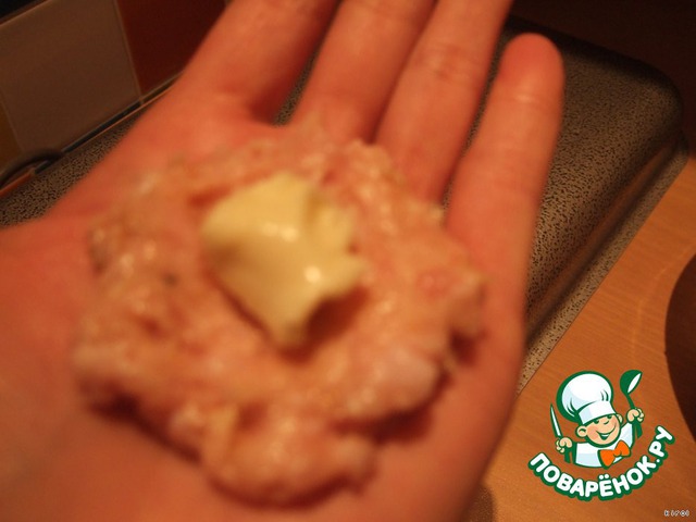 В серединку кладем сливочное масло (я брала кофейной ложечкой) - маленький кусочек.