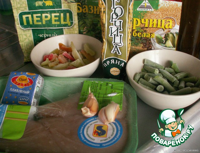 Куриный рулет с зеленой фасолью и горчицей