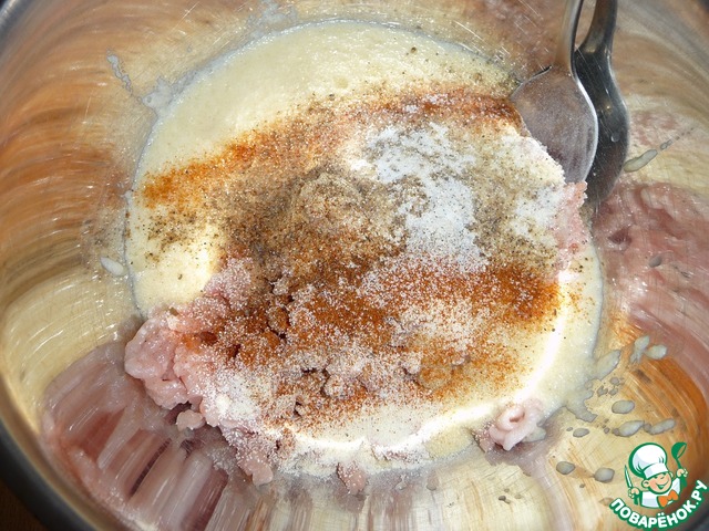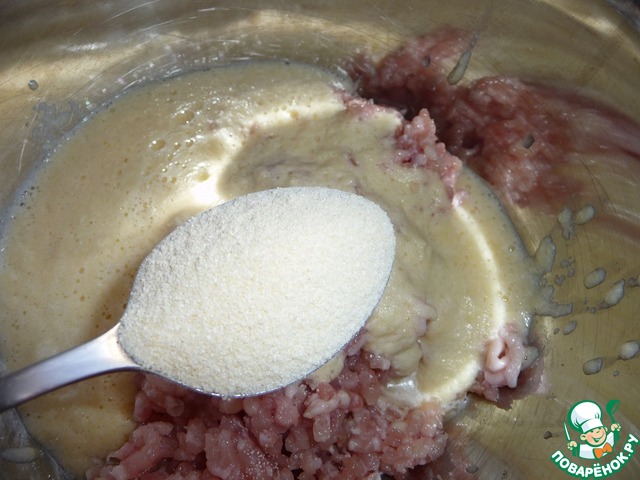 Фарш хорошо вымесить и отбить (для этого берем небольшой кусочек и бросаем его на дно миски, мешаем и повторяем, отбиваем минут 7, но не очень бейте, чтобы не испачкать кухню).