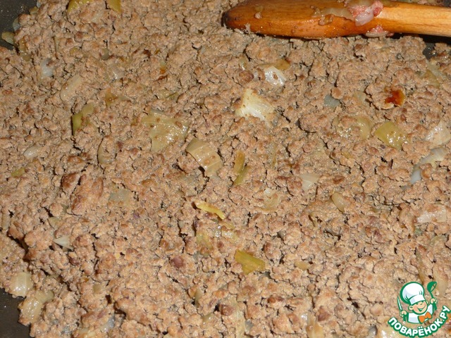 Соль, перец по вкусу, обжаривать до исчезновения розового цвета, постоянно помешивая. Остудить до комнатной температуры.