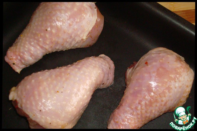 Зафаршированные голени отправляем в смазанную форму для запекания и ставим в разогретую духовку на 40-45 минут (ориентируемся на свою духовку).
