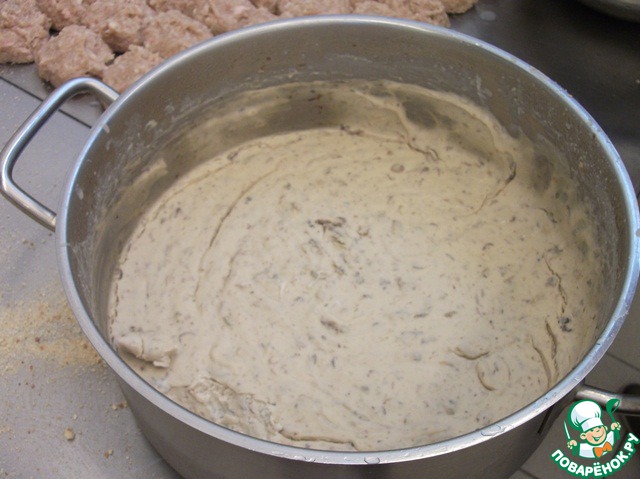 Мокрыми руками делаем из фарша "пирожки" и кладем внутрь молочный соус. После охлаждения он довольно упругий и эластичный.