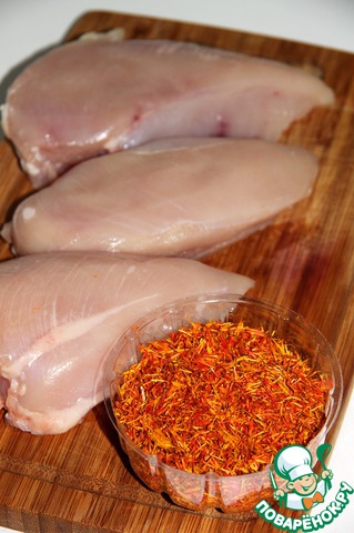 Итак, наш основные ингредиенты – куриные грудки и цветки шафлора.
