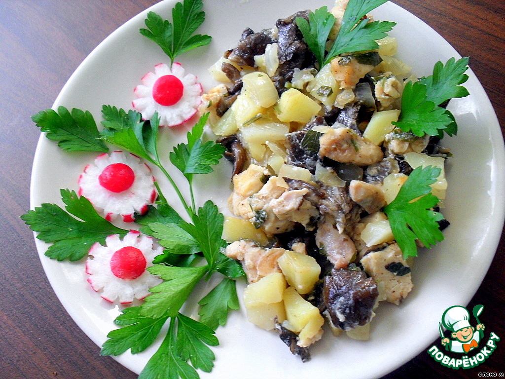 Картофель, запеченный с куриным филе и опятами "Ужин от лентяйки-2 "