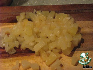 Кусочки ананасов из банки можно сделать и помельче, а можно оставить в том же виде - это на Ваш вкус!
