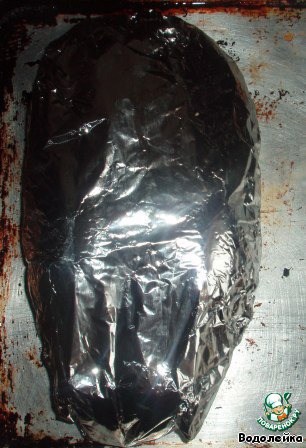 Заворачиваем ее в фольгу и отправляем в духовку примерно на час при температуре около 200*.